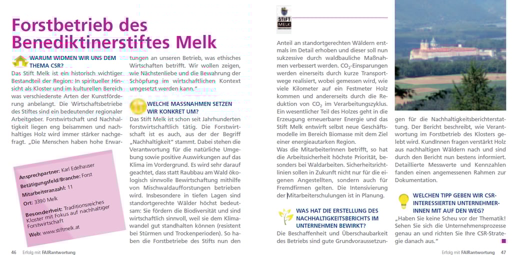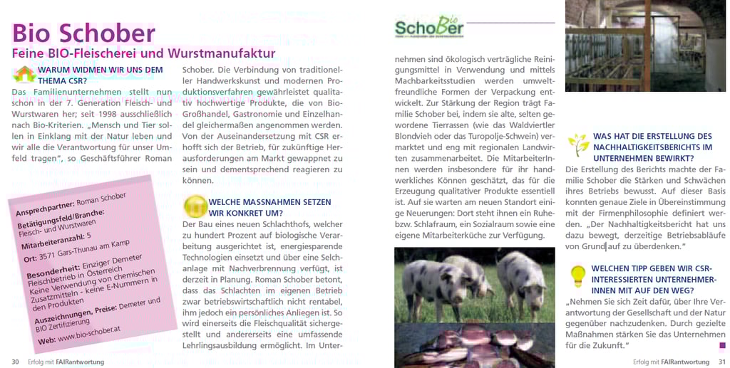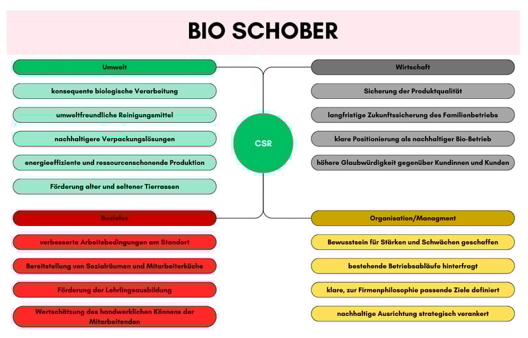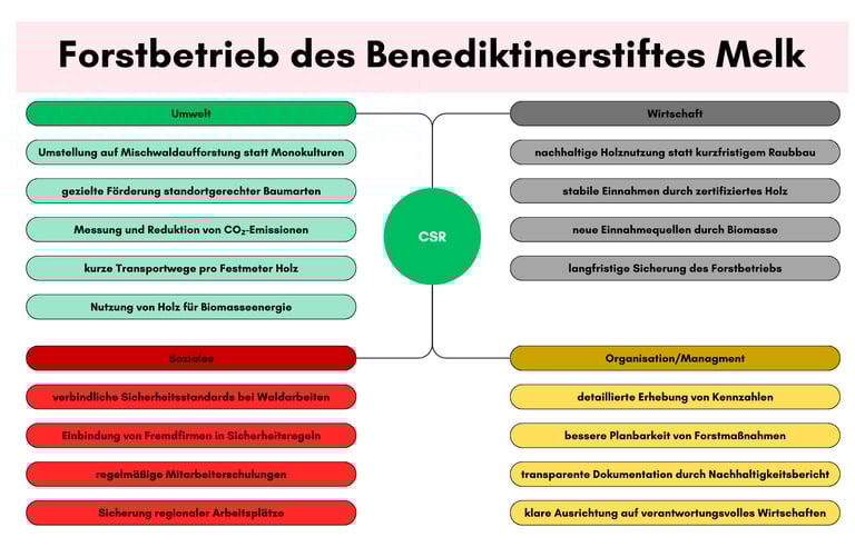 Zuerst wurden grundlegende Begriffe wie Stakeholder und unternehmerische Verantwortung erklärt. Danach wurden konkrete Unternehmen analysiert, wie zum Beispiel die Firmengruppe Kastner, und deren nachhaltige Maßnahmen sowie deren Wirkung untersucht. Anschließend wurden eigene Argumente zur Bedeutung von CSR entwickelt und persönliche Schwerpunkte festgelegt.